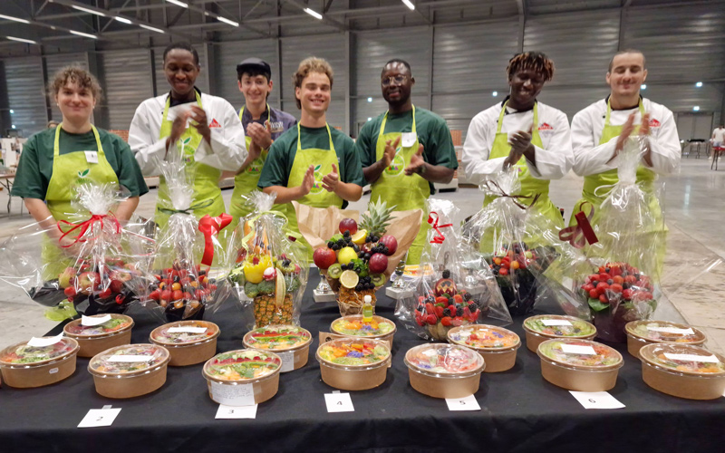 Après un QCM sur le métier, la réalisation d’un étal et un sketch de vente, ils ont été évalués sur leur capacité à valoriser les fruits et légumes pour concilier plaisir et santé à travers deux créations tendance et gourmandes : un bouquet de fruits et un Poke Bowl.